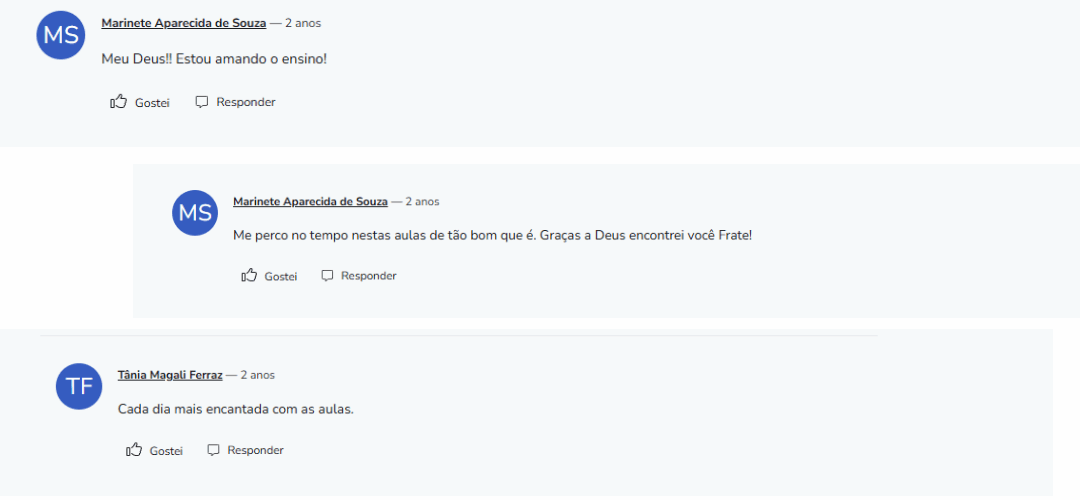 O curso completo tem uma duração de cerca de 3 anos, completando uma lição por semana.